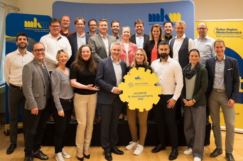 Nach zwei Jahren, drei Großmodulen mit insgesamt 140 Wochenstunden und einer Abschlussarbeit samt Präsentation konnten am Dienstag 14. Oktober 2025 insgesamt 21 Absolventinnen und Absolventen aus den niederösterreichischen Musik- und Kunstschulen ihre Abschlusszertifikate entgegennehmen.